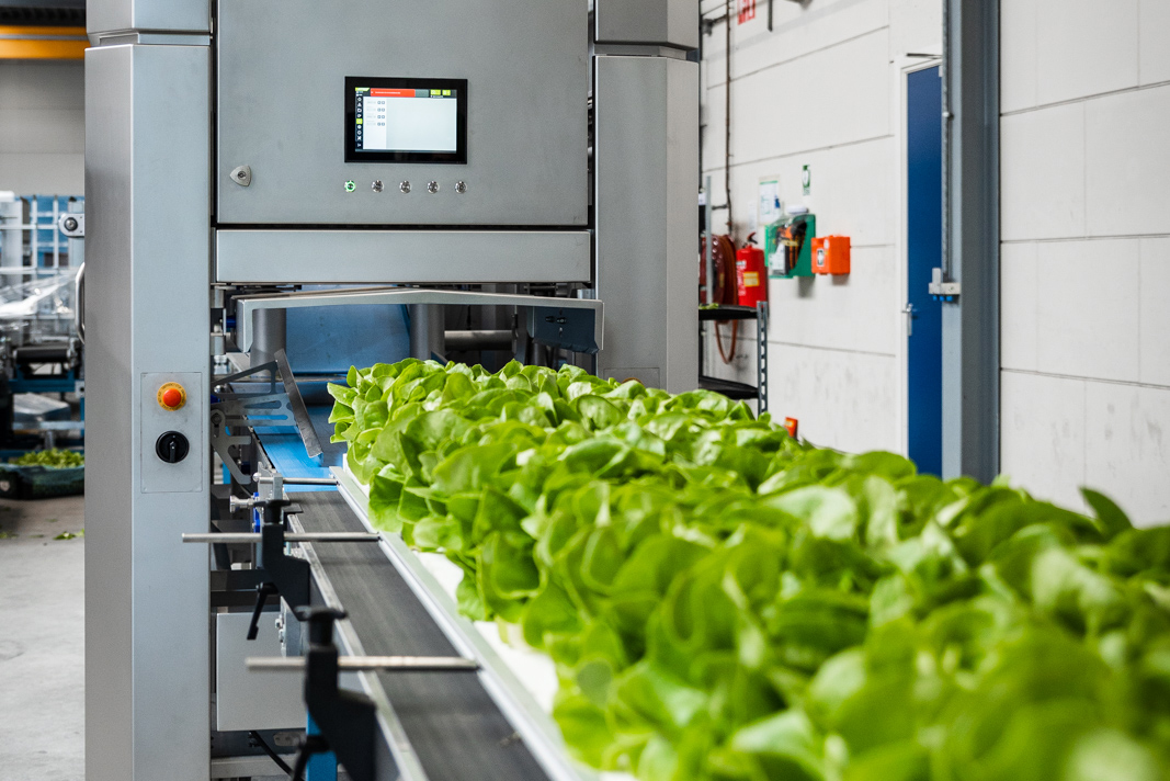 La bHarvest es una nueva y revolucionaria forma de cosechar cultivos de interior. La máquina está equipada con múltiples transportadores de entrada y salida y una innovadora unidad de corte para procesar los productos.