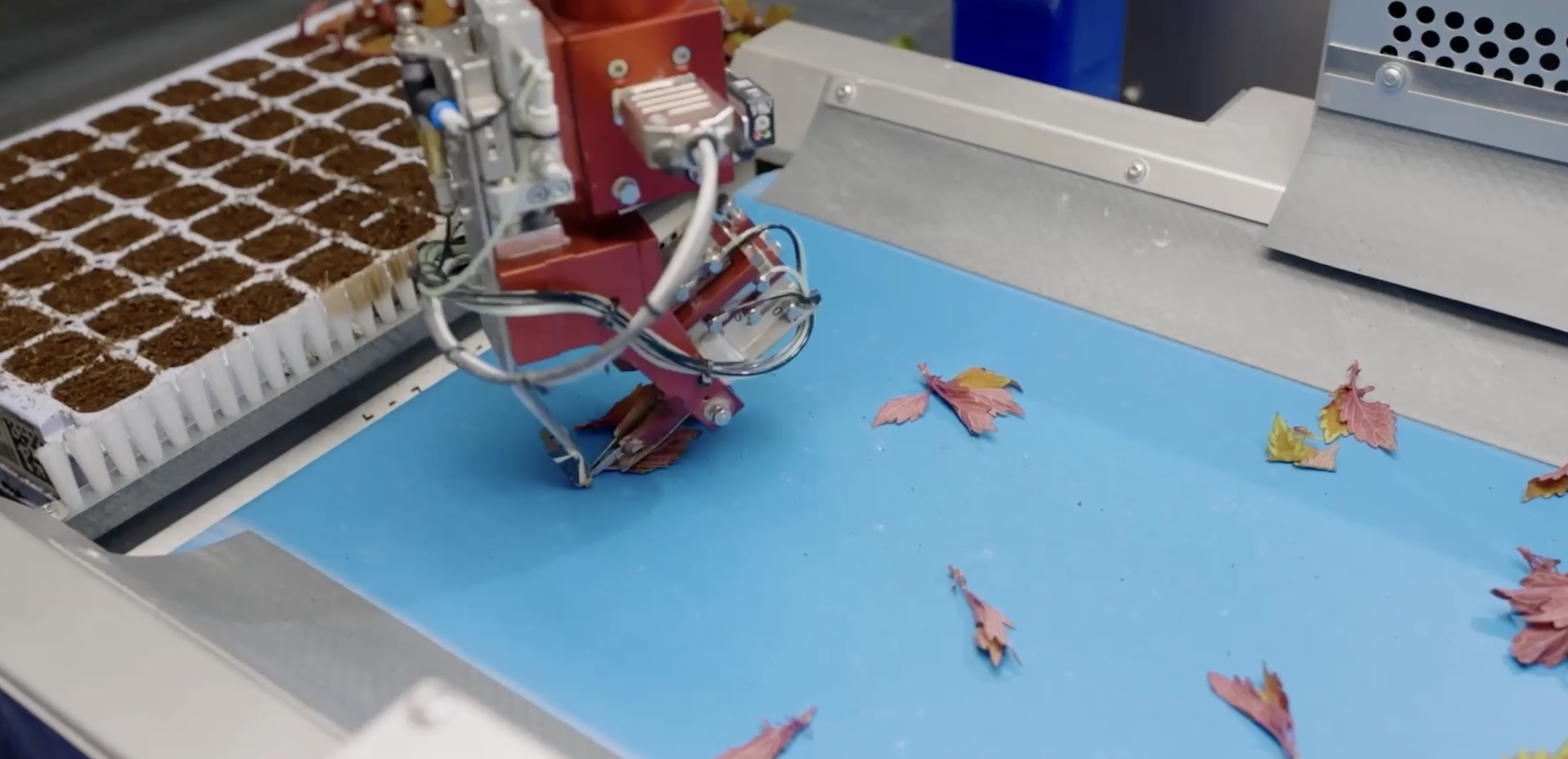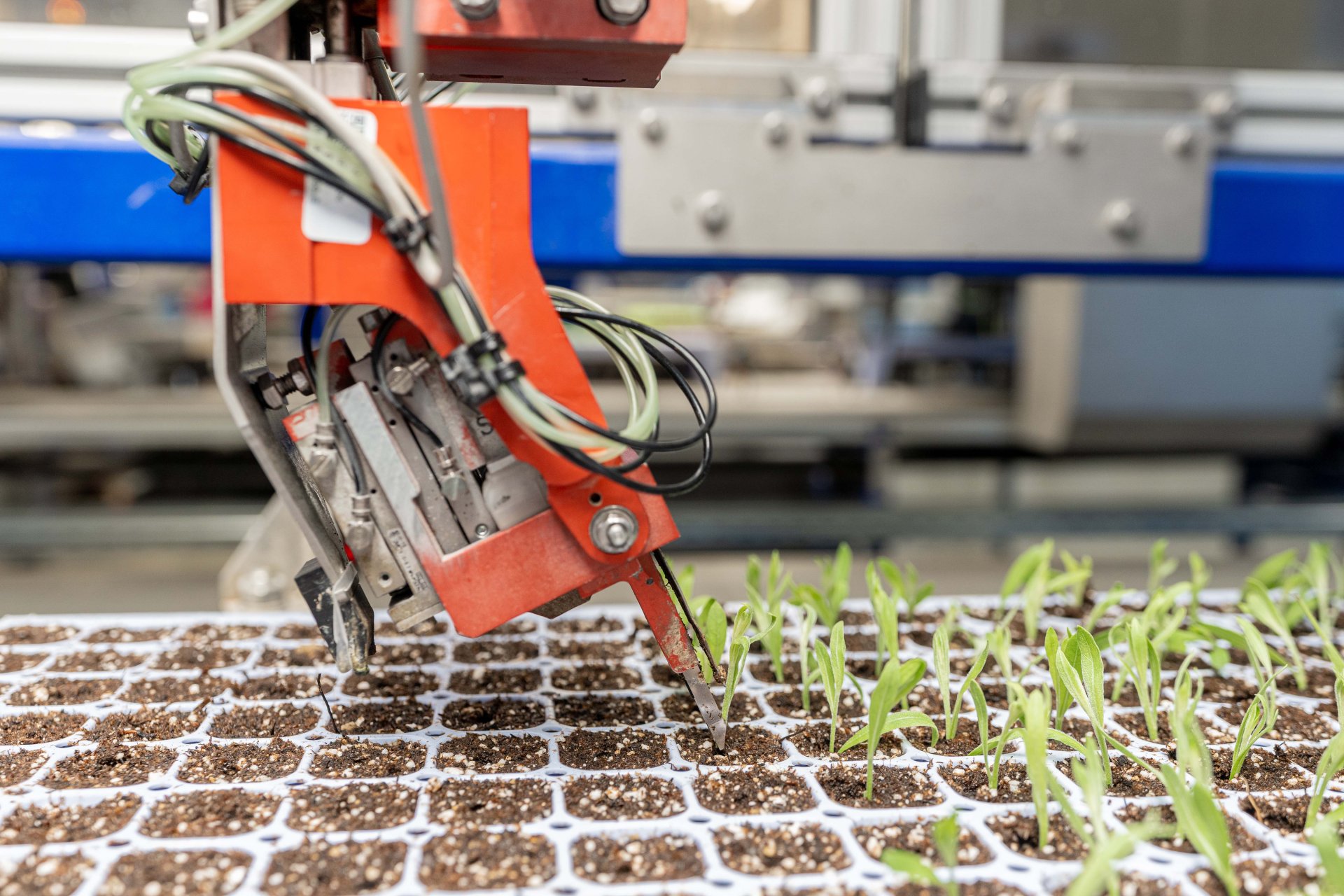 La Cutting Planter esquejes funciona de forma tan revolucionaria como eficaz. Basándose en un software de visión de autoaprendizaje, el robot selecciona los esquejes y planta cada uno a la misma profundidad. Esto crea una uniformidad perfecta en el resultado de la plantación. En el proceso, no es necesario preseleccionar los esquejes. De este modo, cada máquina puede procesar hasta 2.800 esquejes por hora.