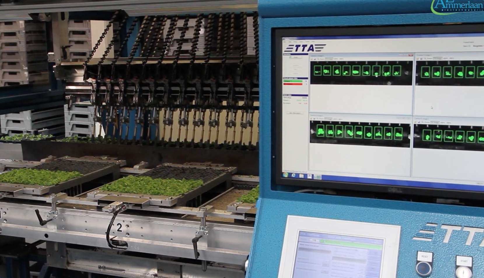 Las plantas desechadas y los tapones vacíos se recogen en una cinta de residuos. La bandeja de destino sale a elección 100% llena (sin necesidad de corrección) o para aumentar la capacidad con algunos huecos, lo que permite al operario corregir el resultado. La máquina y el sistema de imágenes ofrecen una interfaz de usuario fácil de entender con autodiagnóstico incorporado.