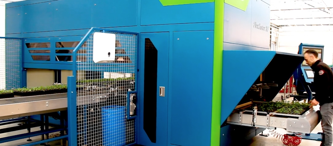 La FlexSorter XF es una línea de selección automática ultrarrápida que puede clasificar y transplantar plantas jóvenes en diferentes grados.
