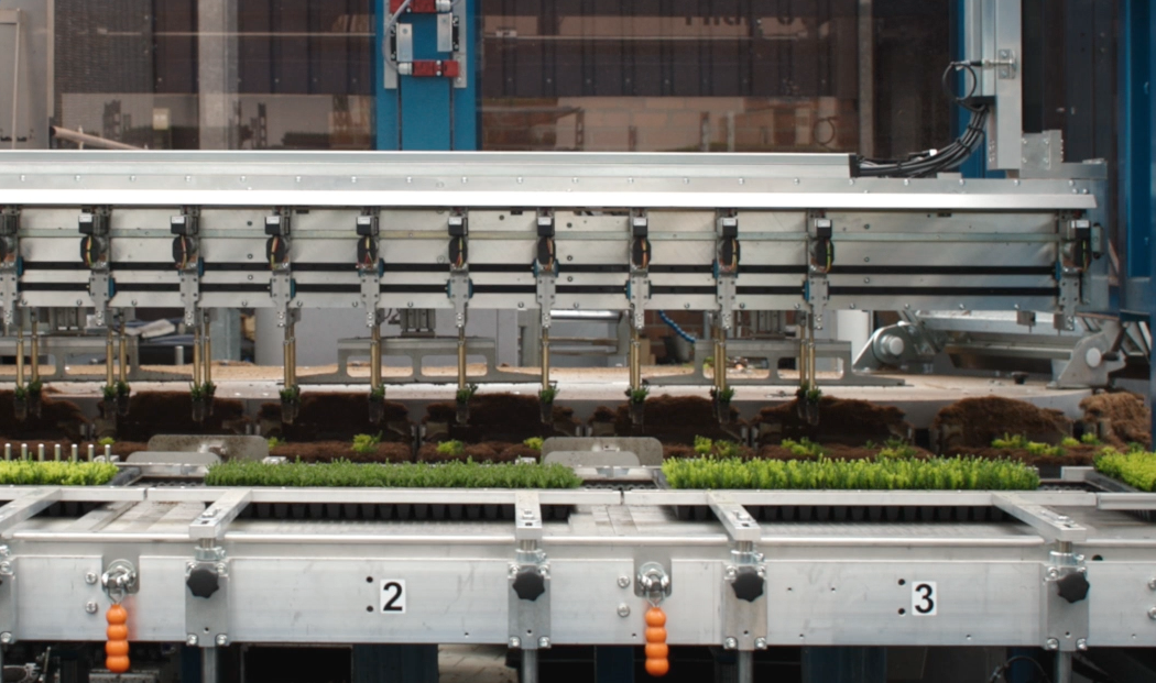 El trasplante sobre una rellenadora de macetas ofrece muchas ventajas, como el trasplante inmediatamente después de la perforación, flexibilidad en el tamaño de la maceta, múltiples plantas por maceta, etc. TTA-ISO ha conseguido incorporar todas las exigencias posibles en el ámbito del trasplante en una única trasplantadora.