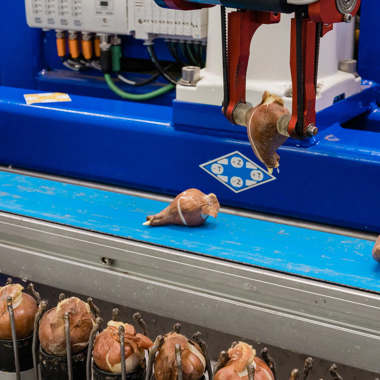En TTA-ISO, desarrollamos soluciones de automatización de vanguardia que abordan estos retos de frente. Con innovaciones como el Bulb Planting System, que coloca automáticamente los bulbos de tulipán en cajas, y la BulbPacker, que extrae los bulbos de las cajas y los coloca para su procesamiento, eliminamos algunos de los pasos que más tiempo y mano de obra consumen en la producción de bulbos.